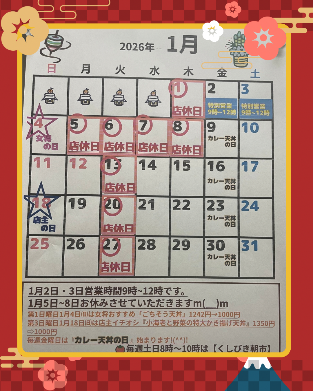 2026年1月営業予定