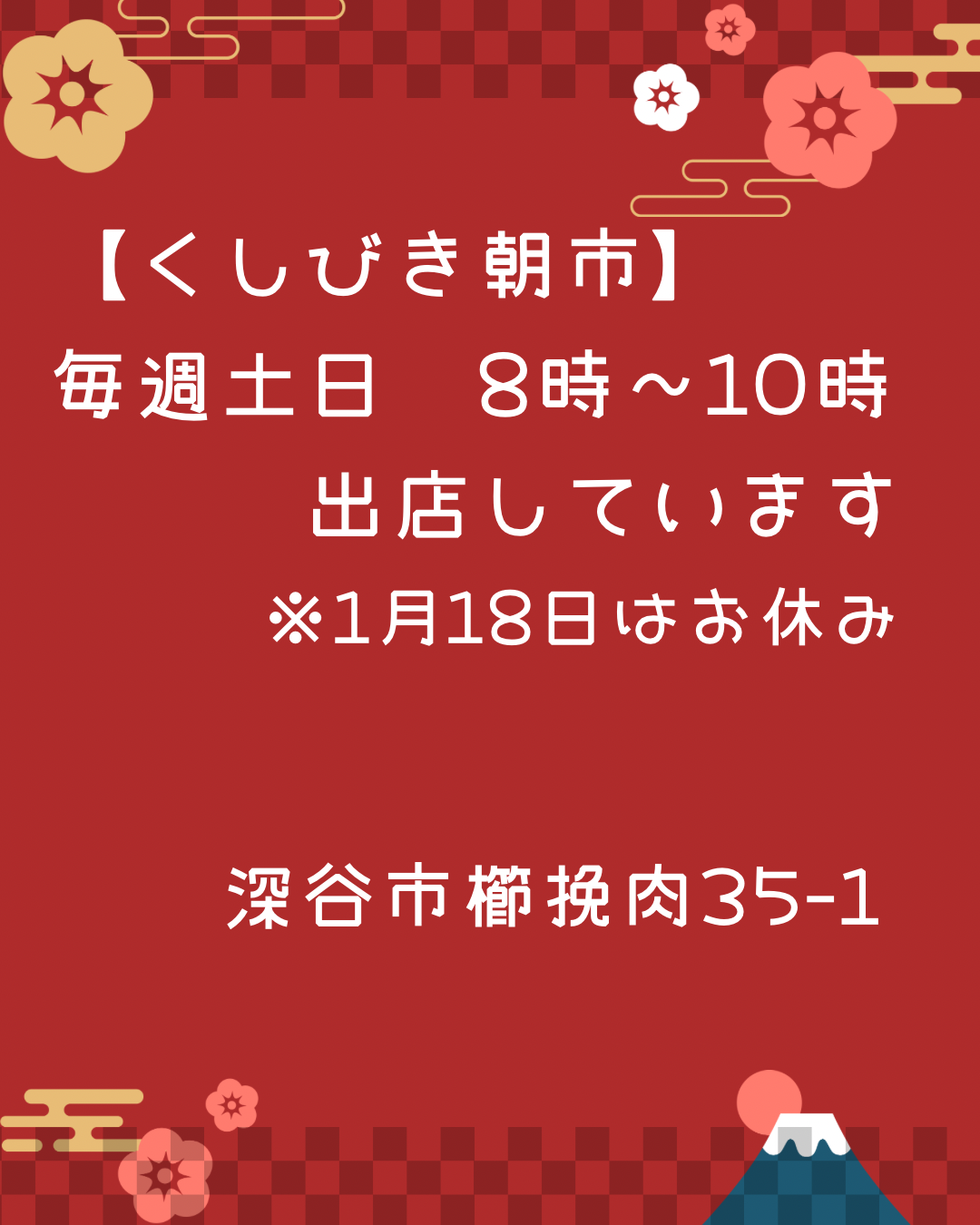 1月5日(月)〜8日(水)お休みですm(_ _)m -