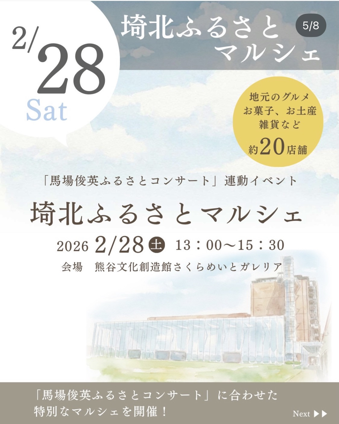 🔸2月28日(土)埼北ふるさとマルシェ13時〜15時30分(籠原の【さくらめいと】】